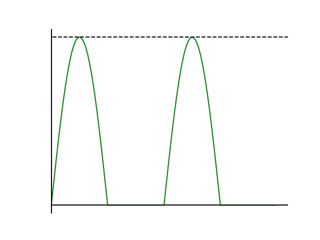 Esse tipo de circuito é chamado de retificador de meia onda, uma vez que ele elimina metade da onda de entrada. Além disso, embora sem a parte negativa, este sinal ainda não é um sinal CC puro, já que ele não é estável em uma única tensão.